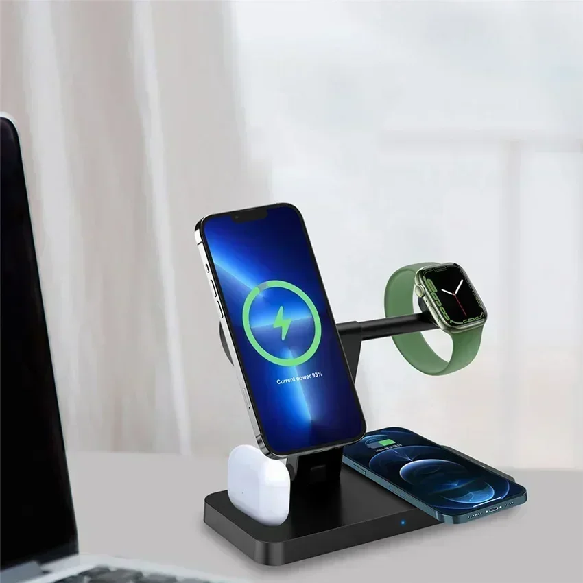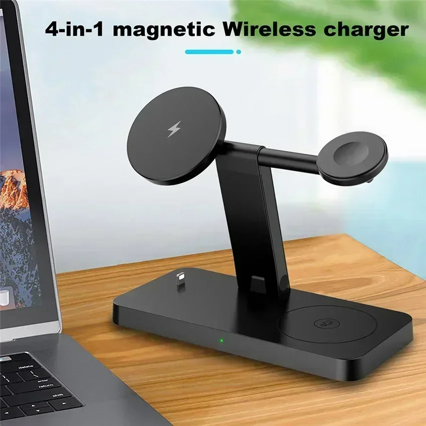 15W 4 In 1 Foldable Fast Charging Station Magnetic Wireless Charger Stand For Magsafe iPhone 12-16 iWatch Airpods Desktop Stand