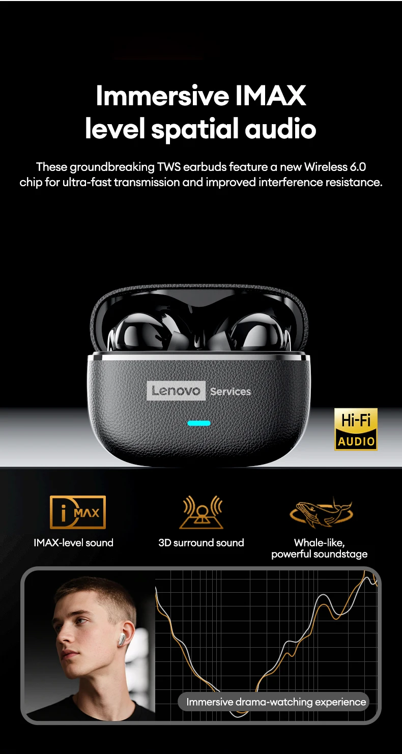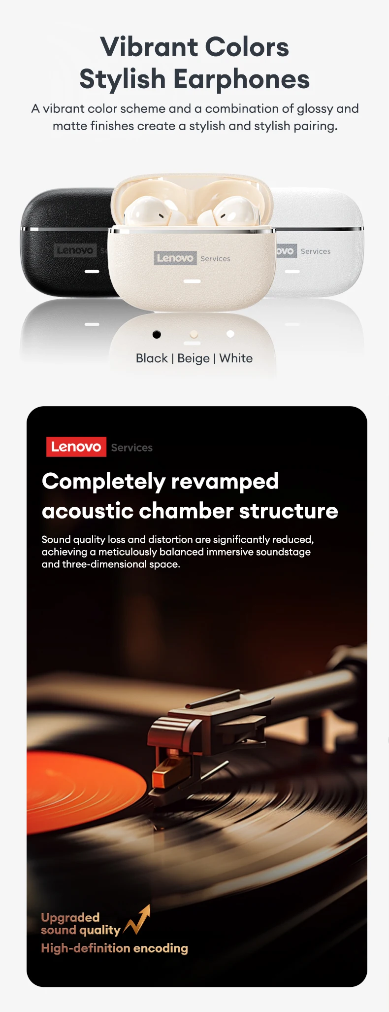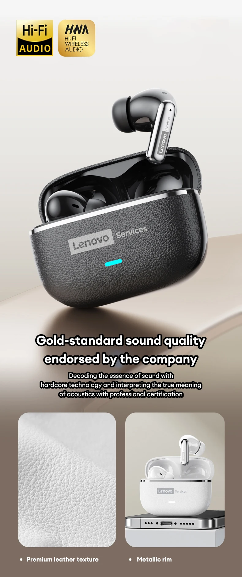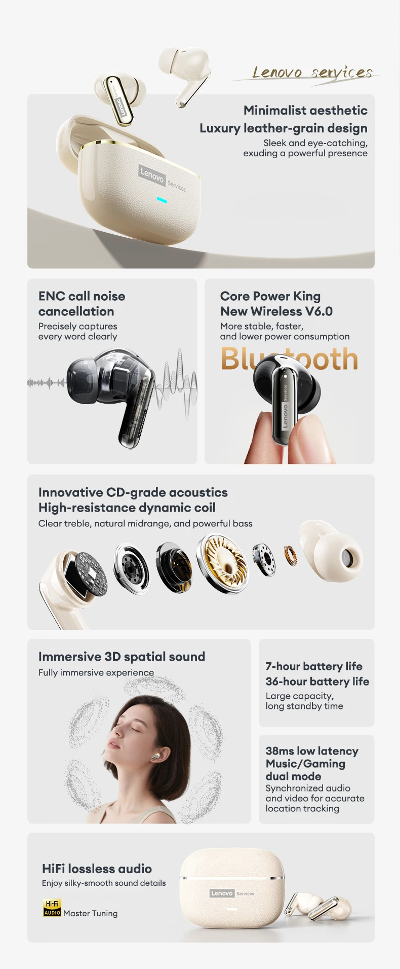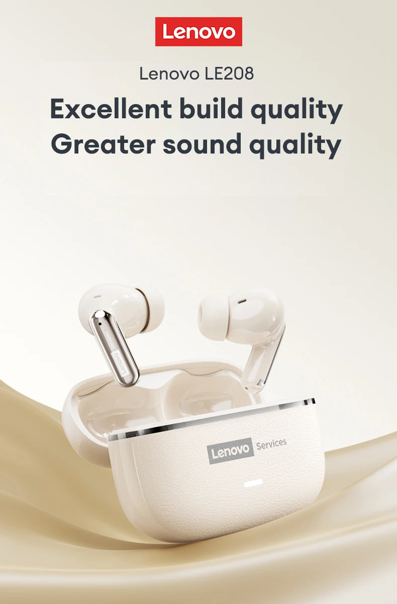 Lenovo LE208 TWS Bluetooth 6.0 Wireless Leather Earphones Stereo ENC Noise Cancelling Headphone 38ms Low Latency Gaming Headset