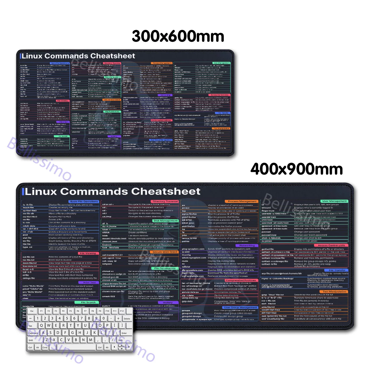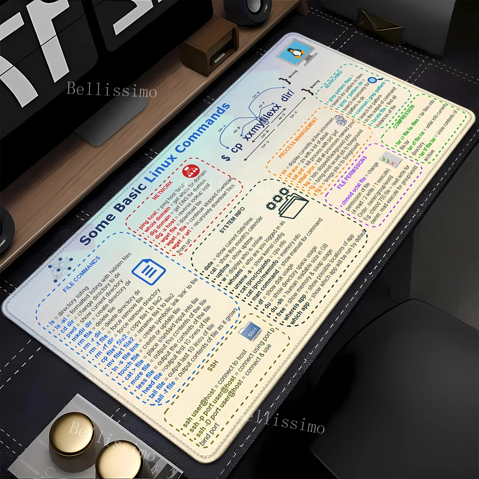 Linux Commands Line teclado mouse pad Large mousepad Shortcuts for Red Hat Ubuntu OpenSUSE Arch Debian Unix Programmer Desk Mat