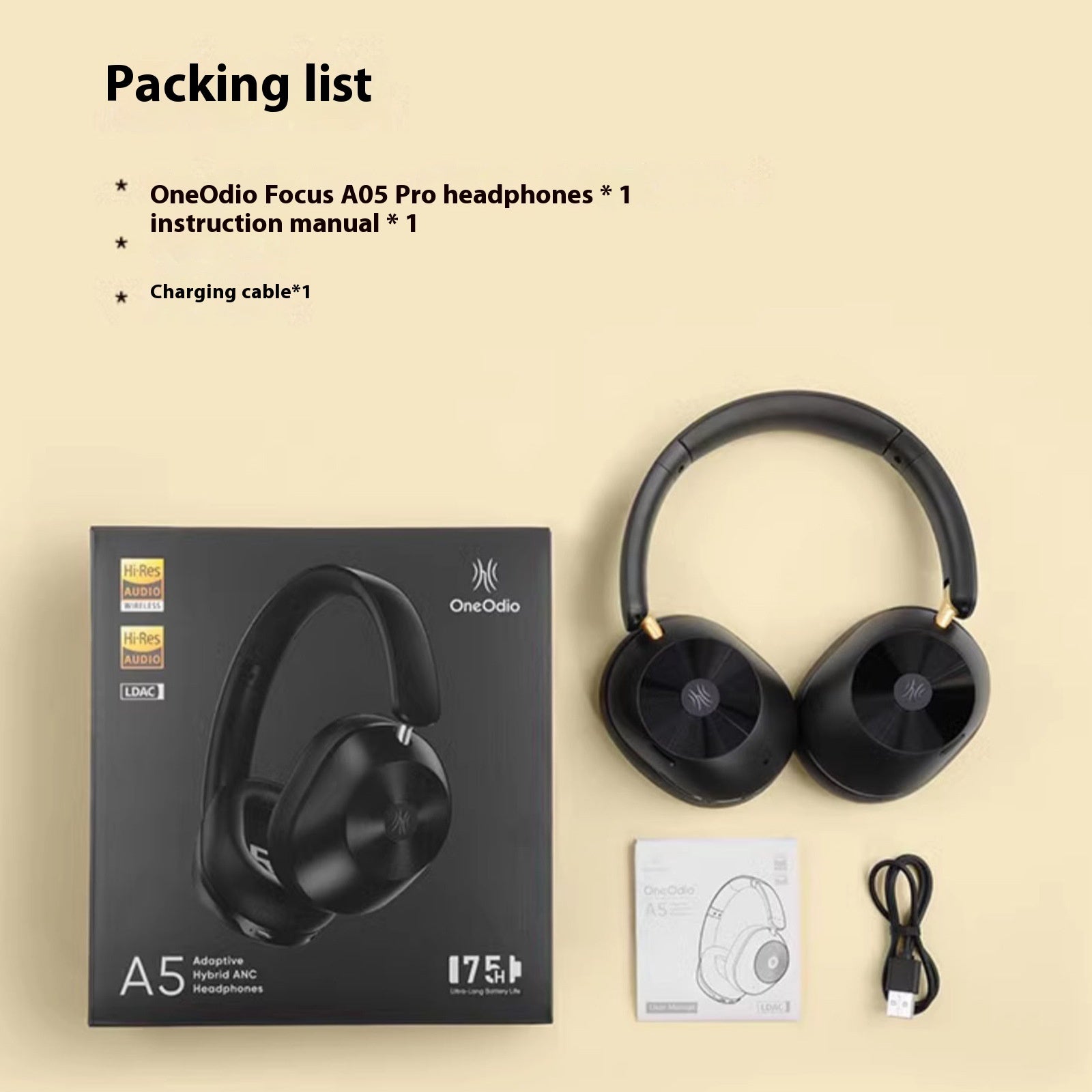 OneOdio Focus A05 Pro Headset *1 Instructions *1 Charging cable *1