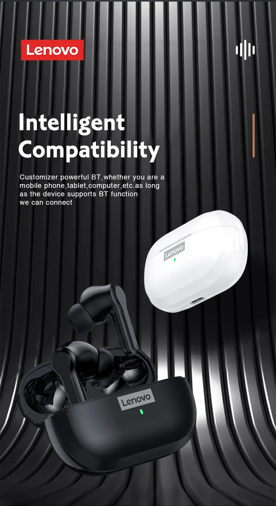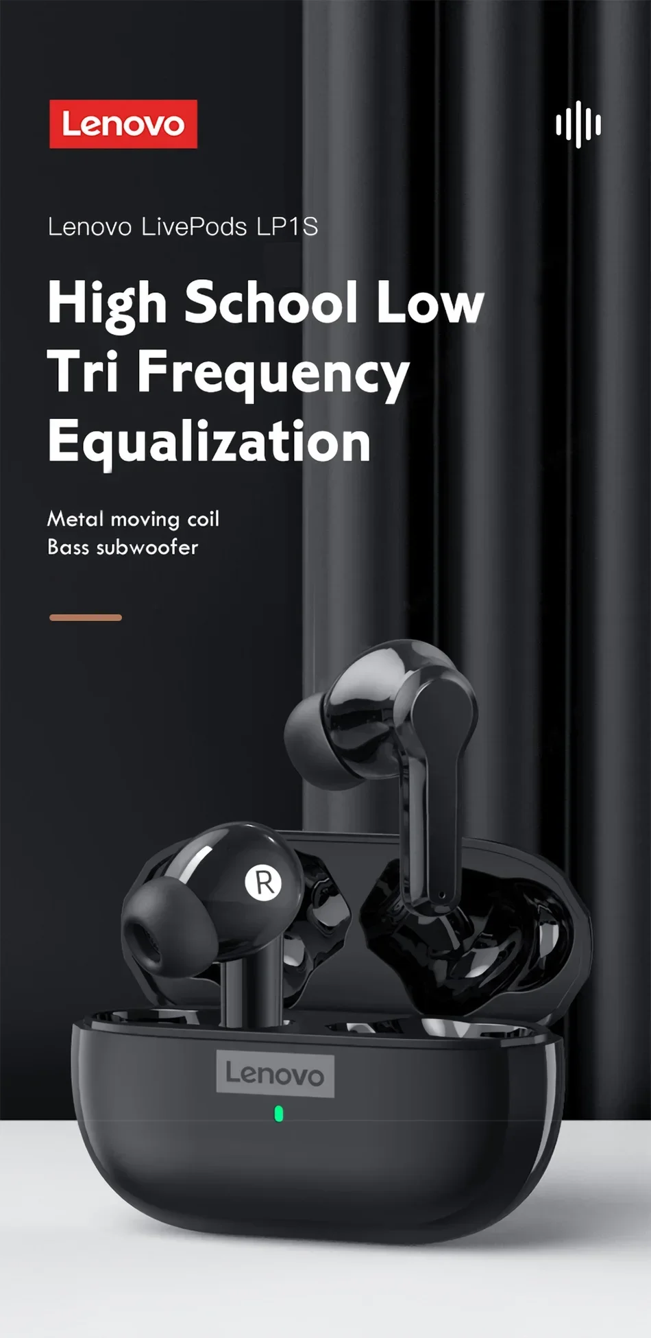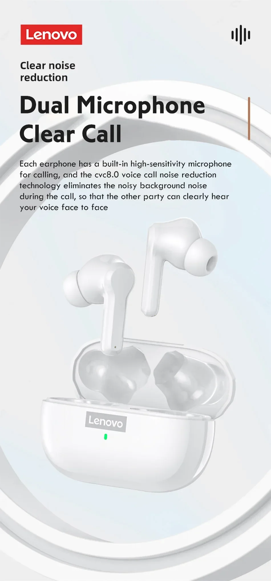 Original Lenovo LP1S Earphones TWS Wireless Bluetooth 5.0 Headphones Waterproof Sport Headsets Noise Reduction Earbuds with Mic