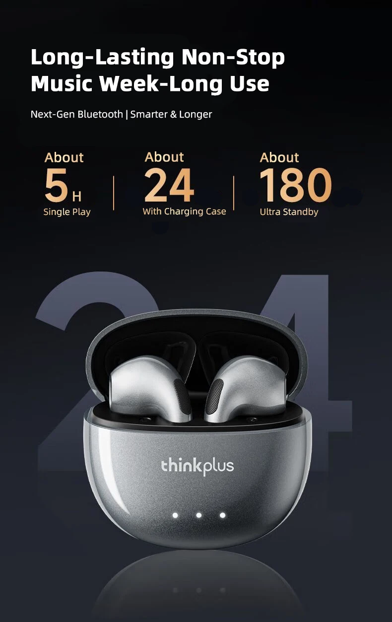 [24H Flash Charging]: The earbuds last about 4 hours per use. With the charging case, total battery life reaches 24 hours. It meets all-day needs for travel or commuting.
