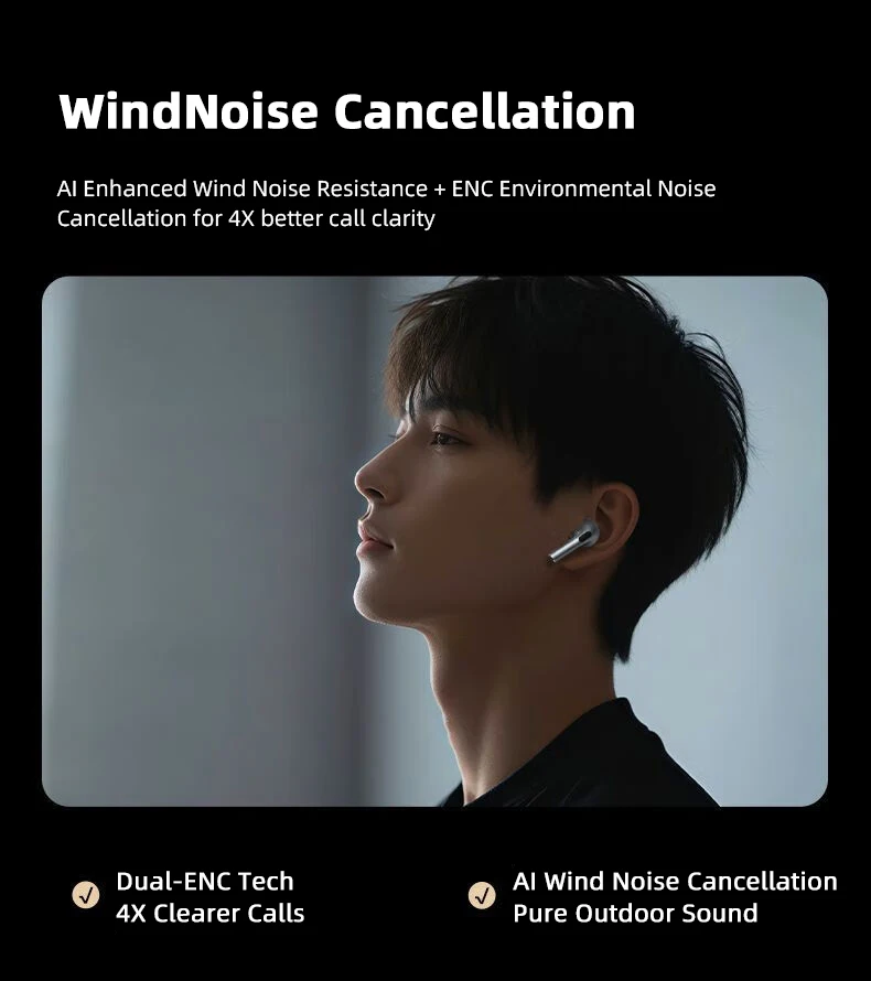 [Clear Call Noise Cancellation]: ENC dual microphone noise reduction Intelligent noise reduction technology can identify and filter out more than 88% of background noise. Advanced algorithms filter out background noise. It captures pure human voices easily. You can communicate smoothly in noisy places.