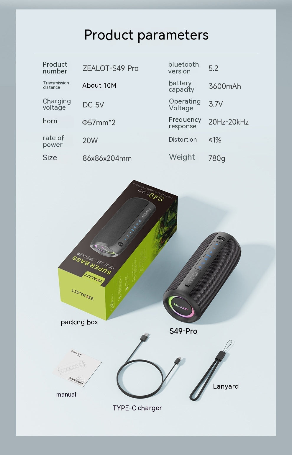 Product Model: S49Pro Bluetooth speaker