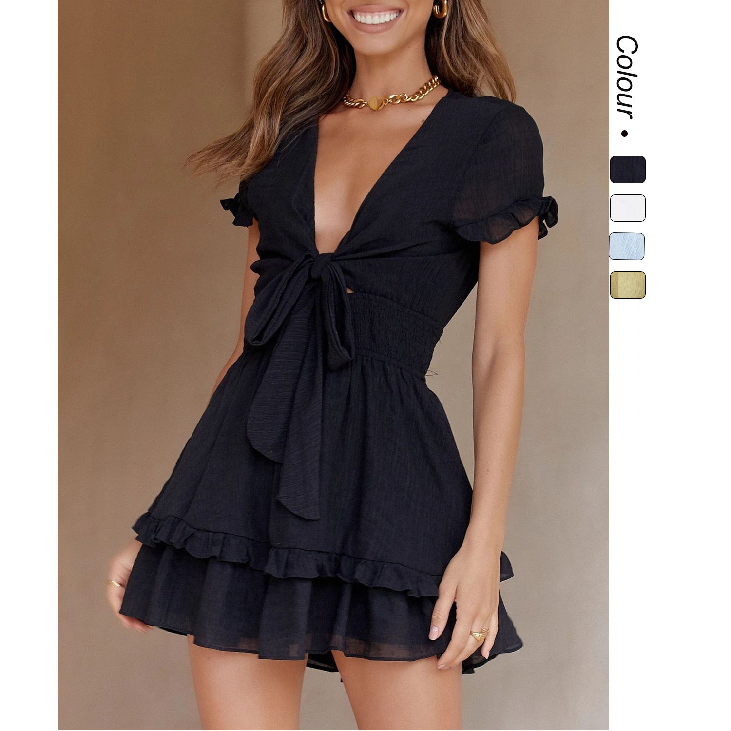 The Ruffled Sweet Tie-neck V-neck Chiffon Dress is loved by style influencers and everyday trendsetters who appreciate classic fashion with a modern twist. It’s the dress that gets noticed in photos and earns compliments at every gathering.