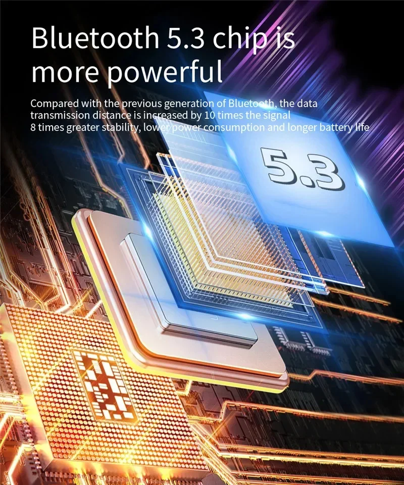 The wireless ear buds has a built-in touch sensor and Bluetooth 5.3 for fast response, without pressing hard. Gentle touch, delicate control finger touch control Play Music/ Answer Call/ Noise cancelling switch/ wake up SIRI.