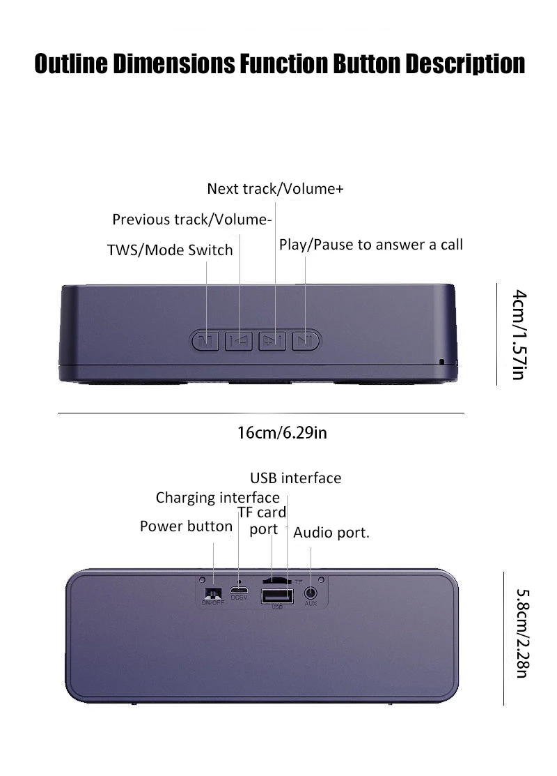 • Portable Design :Compact and lightweight, this speaker is perfect for outdoor activities or on-the-go use.