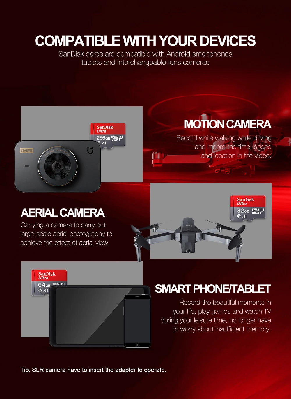 Expand your storage and enhance the performance of your devices with the SanDisk MicroSDXC Memory Card. Designed for a wide range of applications, from mobile phones and tablets to notebooks, cameras, and more, this high-speed memory card delivers reliable performance for data storage, high-speed read and write capabilities.