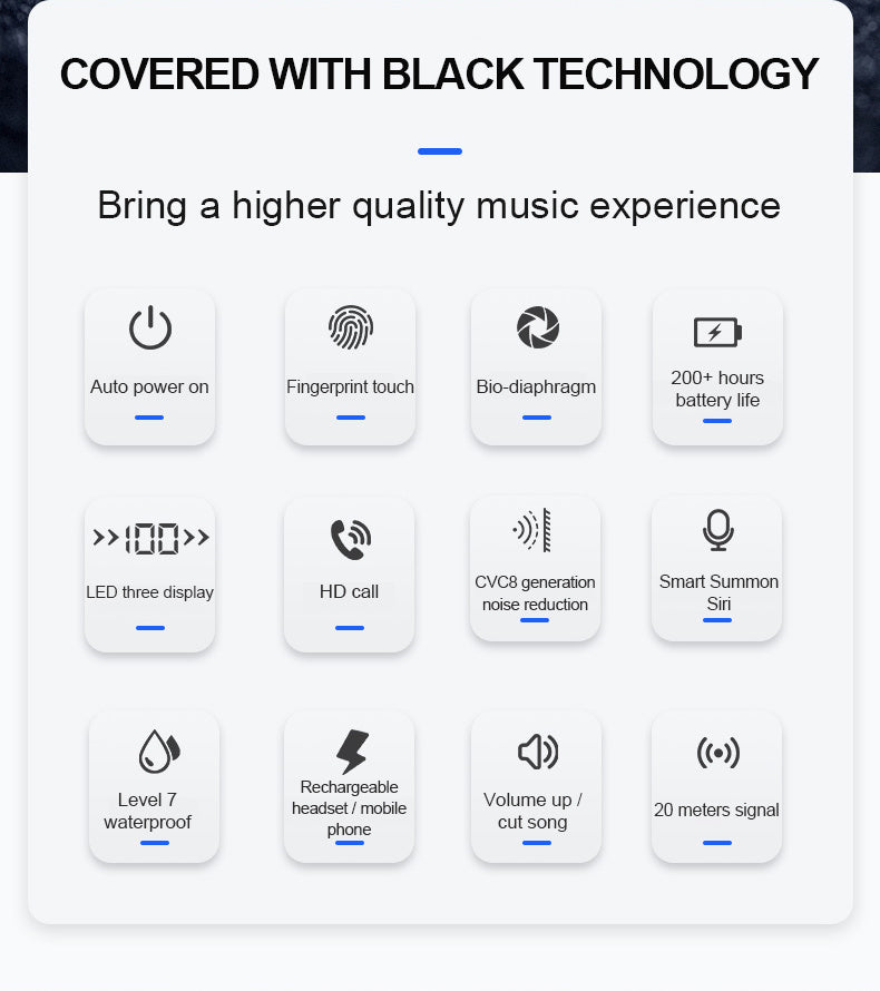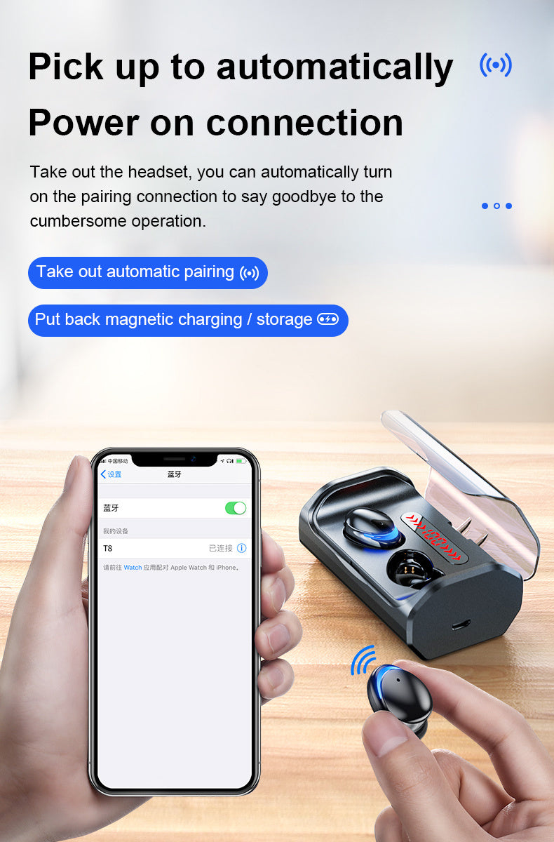 T8 Bluetooth 5.0 headset touch control wireless headset
